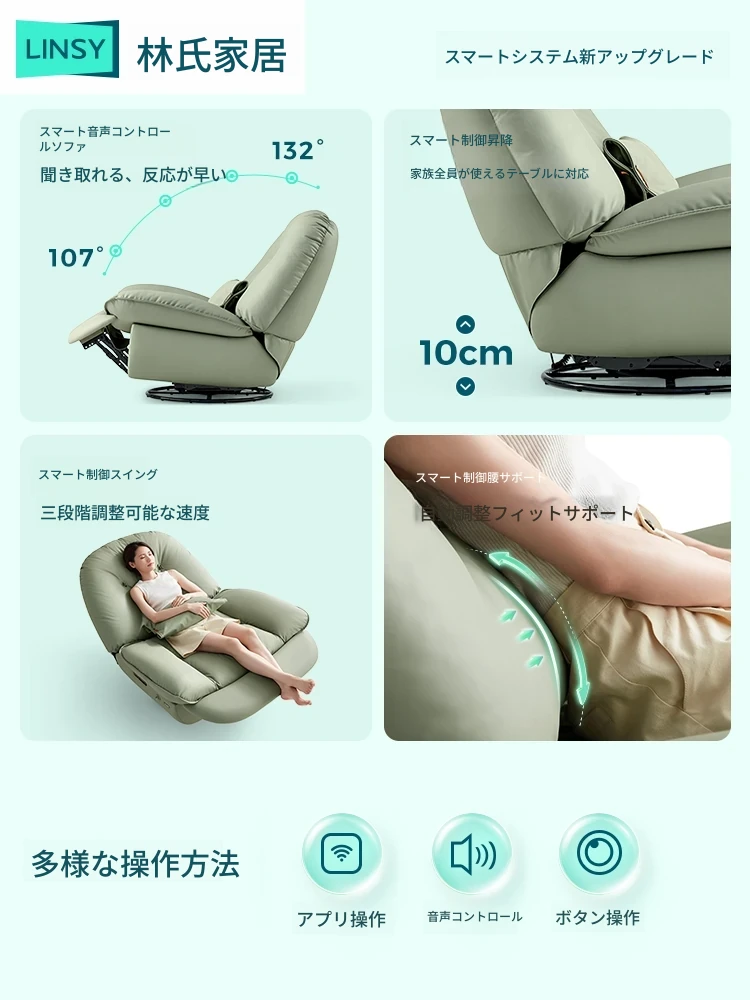 政府補助付き!林氏家居の機能性スマート電動ソファー、リラックスできる単独チェア、揺れるチェア、快適な休息空間を提供します。あなたのリビングに最適な一品です!