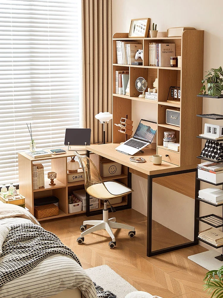 リンシー家具 オフィスデスク 書棚付き 大人向け 家庭用 学生用 コンピューターデスク 寝室学習デスク - 快適な作業空間を提供!スタイリッシュで実用的なデザイン。