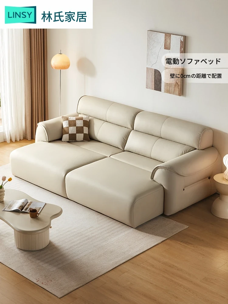 林氏家居 小型多機能電動ソファベッド 現代クリームスタイル 伸縮可能なソファベッドで、おしゃれで快適な空間を実現!小さなお部屋にぴったりのデザインです。